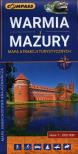 Warmia i Mazury to region o niezwykłej różnorodności przyrodniczej, unikalnym ukształtowaniu terenu i dużym nagromadzeniem zabytków historycznych. Obszar ten zwany jest „zielonymi płucami” Polski oraz „krainą tysiąca jezior”. Dużo tu małych urokliwych zbiorników wodnych skąpanych w zieleni, ale także wielkich akwenów pełnych żaglówek i jachtów czy wspaniałych dzikich rzek, których piękno podziwiać można przy okazji popularnych tu spływów kajakowych. Niniejsze wydawnictwo to ogólna mapa poglądowa rozległego obszaru, jakim są Warmia i Mazury. Dedykowana jest zwłaszcza turystom zmotoryzowanym. Przedstawiono na niej aktualną sieć dróg, wybraną bazę noclegową oraz propozycje najciekawszych atrakcji regionu. Wśród nich znajdują się: zamki, pałace, kościoły, muzea, zabytki techniki, obiekty militarne, cuda przyrody, wyróżniające się miejsca widokowe i panoramy. Na odwrocie mapy zamieszczono krótki opis polecanych miejsc. Co warte podkreślenia, obiekty te zostały wybrane i opisane przez człowieka legendę tego regionu - szefa oddziału PTTK Olsztyn, znawcę i autora licznych publikacji o Warmii i Mazurach - Mariana Juraka.