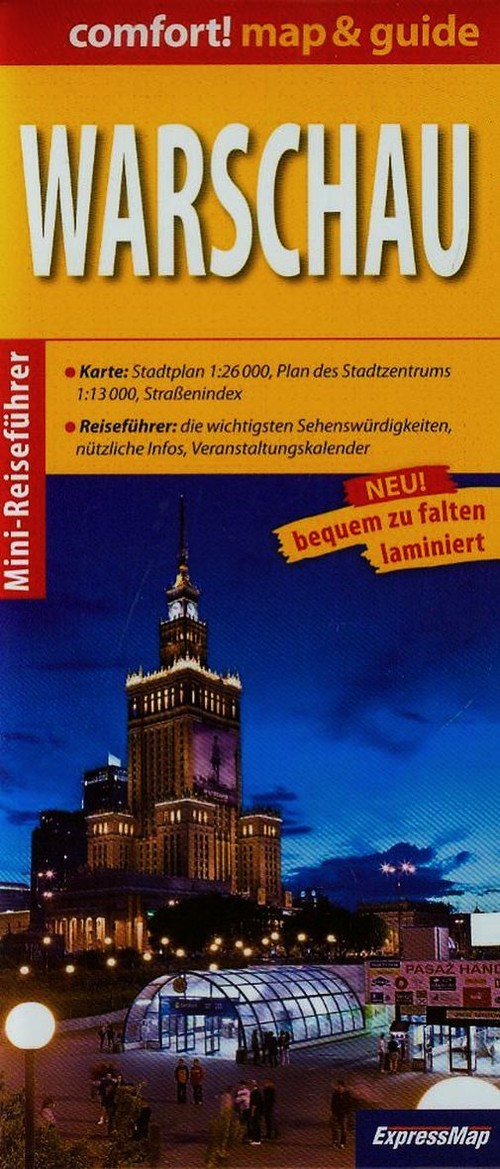Wizyta w Muzeum Powstania Warszawskiego, spacer w Łazienkach, a może wjazd na 30. piętro Pałacu Kultury i Nauki? Po zwiedzaniu – stołeczne flaczki, pyzy z Bazaru Różyckiego lub kakaowa wuzetka dżemem. Comfort! map&guide „Warszawa” pomoże odkryć ciekawe zakątki stolicy. Praktycznie i treściwie – coś dla zabieganych oraz ceniących wygodę i prostotę: wygodna mapa o dogodnej dla turysty skali (1:26 000, plan centrum 1:13 000), zajmujące opisy 44 najciekawszych miejsc (wszystkie opisy ponumerowane, a numery zaznaczone na mapie), przydatne informacje praktyczne: dni i godziny otwarcia obiektów, ceny biletów, transport publiczny, informacje o tradycyjnej kuchni, sugestie, gdzie wybrać się na zakupy, kalendarium imprez cyklicznych, indeks ulic.