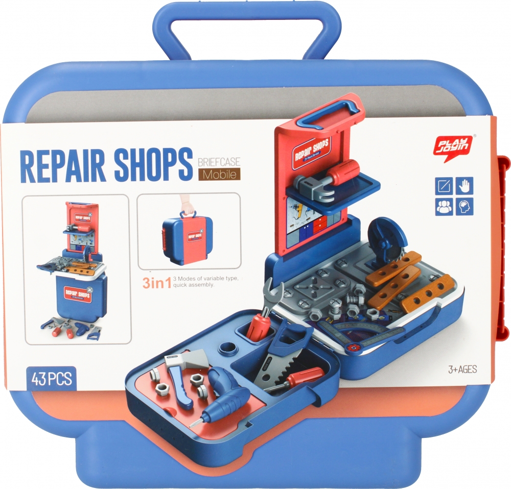 Zalety produktu: Warsztat z narzędziami dzięki któremu dziecko może poznać możliwości i funkcjonalność prostych narzędzi, zabawka rozwija zdolności manualne oraz myślenie przestrzenne, zestaw zamknięty w walizkę z rączką do wygodnego przenoszenia narzędzi. Dzięki możliwości zabawy Warsztatem 3W1 MEGA CREATIVE, dziecko już we wczesnych latach pozna zastosowanie i możliwości prostych narzędzi co uczyni je bardziej zaradnym w przyszłości. Warsztat to kreatywna zabawka! Warsztat w walizce to przenośny warsztat z dużą ilością niezbędnych narzędzi do majsterkowania, szafką i półeczkami na narzędzia, to warsztat który możesz zapakować do poręcznej skrzyni i zabrać go ze sobą do ogrodu, do przyjaciół aby dalej kontynuować swoją przygodę z majsterkowaniem, to praktyczne i niezbędne narzędzia jakie możesz poukładać na swoich półkach w pokoiku którymi zreperujesz i zmontujesz wiele potrzebnych ci rzeczy. Zawartość zestawu 43 akcesoria: warsztat do majsterkowania, narzędzia oraz dodatkowe akcesoria tj.: piła ręczna, wkrętarka, piła mechaniczna, śrubokręt, młotek, klucz, 3x deseczki, miarka, siekierka, śrubki +nakładki na śrubki....wszystkie produkty są imitacją prawdziwych narzędzi. Produkt wykonany z plastiku. Wymiary/waga/baterie: Wymiary opakowania (dł. x wys. x gł.) [cm]: 26x22x11 , waga produktu w opakowaniu (kg.) 0,91 kg. Wymiary produktu (dł. x wys. x gł.) [cm] 52x31x22, waga produktu (kg.) 0,95 kg. Przeznaczony dla dzieci w wieku: 3+. Nie wymaga zasilania bateriami. Pakowany w walizkę w banderoli.