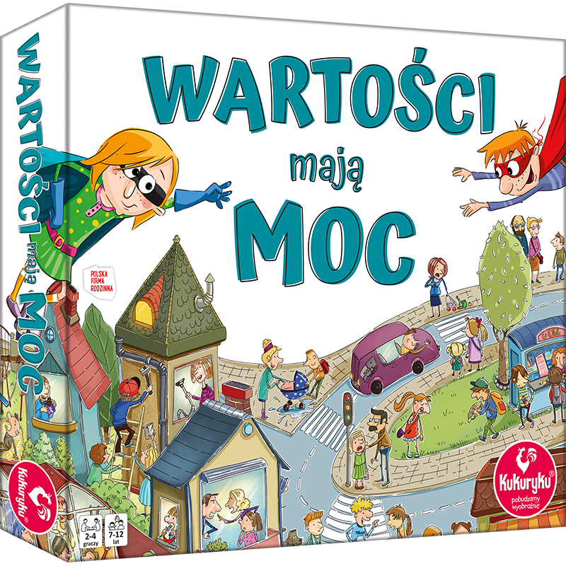 Wartości mają moc to gra, w której gracze wcielają się w superbohaterów, a ich głównym celem jest rozwiązywanie problemów mieszkańców miasteczka. Każdy ruch to nowa decyzja, która może wpłynąć na losy całej społeczności. Podczas gry, uczestnicy będą mieli okazję do rozmowy o ważnych kwestiach moralnych, co sprzyja rozwijaniu umiejętności interpersonalnych oraz empatii. Współpraca w zespole i dzielenie się pomysłami to kluczowe elementy rozgrywki, które uczą dzieci, jak pracować razem dla wspólnego dobra. Zawartość: puzzlowa plansza, która angażuje wzrok i pozwala na kreatywne podejście do rozgrywki 4 pionki, które reprezentują różne postacie superbohaterów, co dodaje grze dynamiki i emocji 112 kart, które wprowadzają różnorodne wyzwania i sytuacje, zmuszając graczy do myślenia i podejmowania decyzji 64 żetony, które dodają element rywalizacji i strategii, czyniąc każdą rozgrywkę unikalną przejrzyste zasady gry Liczba graczy 2-4 Wiek 7-12