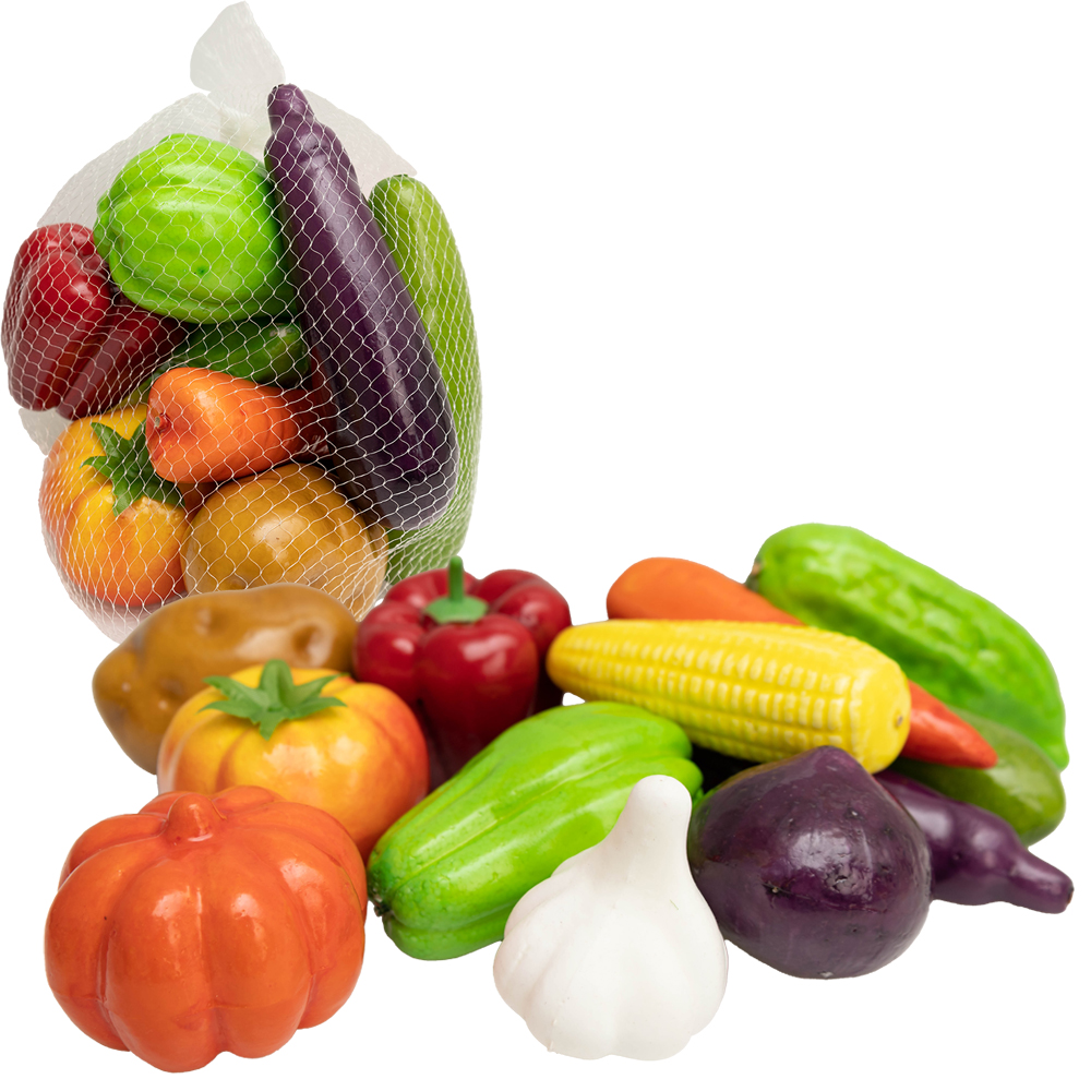 Ten zestaw warzyw to więcej niż zwykła zabawka. To edukacja poprzez zabawę, która pomoże dziecku w rozwoju różnych umiejętności. Wykonane z tworzywa, realistyczne i przyjemne w użytkowaniu. Jeśli chcesz, aby Twoje dziecko uczyło się przez zabawę, to ten produkt jest idealnym wyborem! Wymiary opakowania : 17 x 15 x 25 cm Minimalny wiek dziecka : 3 lata Ilość elementów : 12 papryka, kukurydza, dynia, czosnek, bakłażan, marchew,ka burak, ziemniak, ogórek, cukinia, kabaczek długość bakłażana: 16 cm, średnica dyni 8 cm