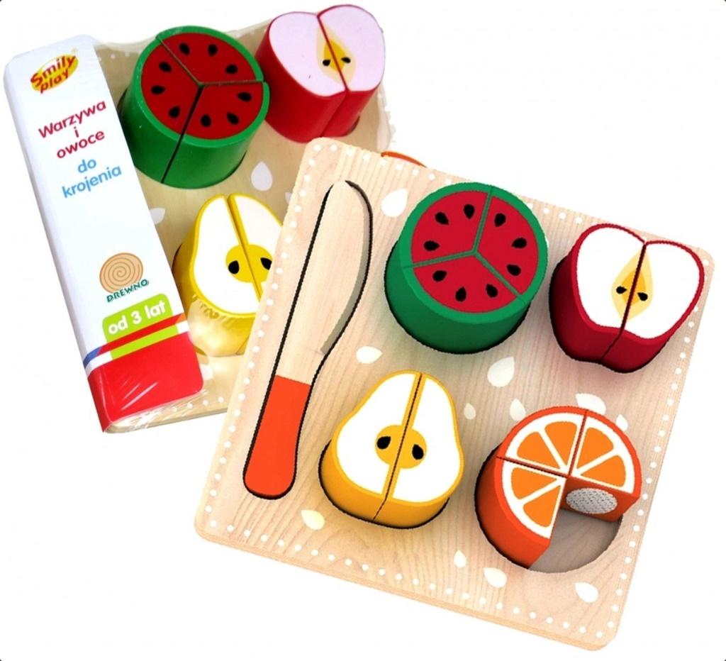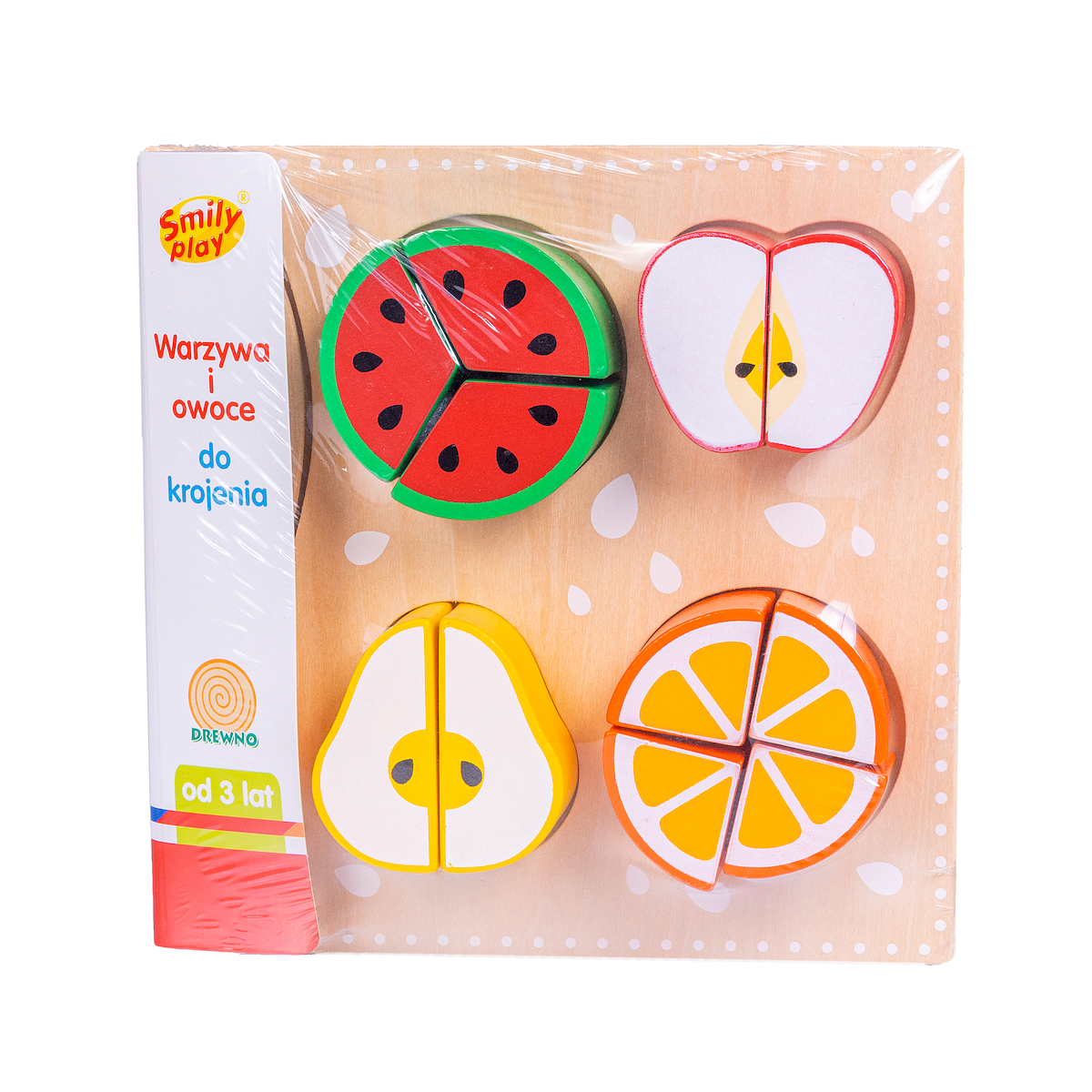 SMILY PLAY DREWNIANE OWOCE DO KROJENIA Z NOŻYKIEM NA RZEPY Produkt należy do serii 4 tego typu zabawek-OWOCE I WARZYWA DO KROJENIA NA DESCE Ładne, realistyczne owoce, dzięki którym zabawa staje się jeszcze ciekawsza. Produkty wykonane są z wysokiej jakości drewna. Pomalowane nietoksycznymi farbami, są bezpieczne dla dzieci. Zabawa pomoże zachęcić dziecko do zdrowego odżywiania. Jest też doskonałym ćwiczeniem małej motoryki. Owoce można "przekroić" dołączonym bezpiecznym, drewnianym nożem, a potem połączyć, ponieważ mają rzepy. Przykładowe wymiary owoców i warzyw : 5,4 x 2,8 x 8 cm 5,5 x 2,8 x 6,5 cm 6 x 2,8 x 6 cm 3,6 x 2,8 x 11 cm SKŁAD ZESTAWU: 4 owoce nożyk deska grubości 8 mm