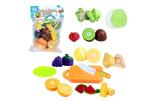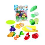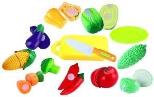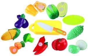 W zestawie: talerzyk, deska do krojenia, plastikowy nóż, 6 warzyw.