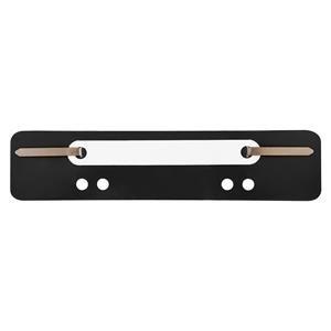 Wąsy do skoroszytów MemoBe. Długość 15 cm i szerokość 3,4 cm. Elementy z mechanizmem skoroszytowym, z metalową taśmą mocującą. Posiadają dziurowanie o rozstawie oczek 6-8 cm do włożenia do segregatora. Zestaw zawiera 25 sztuk w czarnym kolorze.