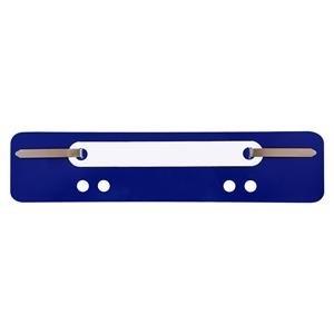 Wąsy do skoroszytów MemoBe. Długość 15 cm i szerokość 3,4 cm. Elementy z mechanizmem skoroszytowym, z metalową taśmą mocującą. Posiadają dziurowanie o rozstawie oczek 6-8 cm do włożenia do segregatora. Zestaw zawiera 25 sztuk w niebieskim kolorze.