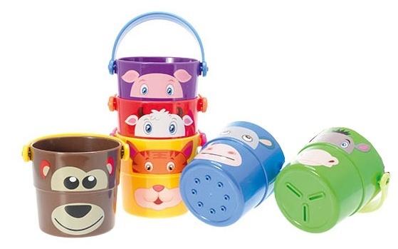 Kąpielowe wiaderka Toi Toys to kreatywna zabawka kąpielowa, stworzona do wodnych szaleństw. Wspiera zdolności motoryczne oraz kreatywność Twojego maluszka. Dzieci mogą je zanurzać, napełniać wodą i obserwować jak woda leci różnymi strumieniami . Idealnie dopasowane do małych rączek. Zestaw składa się z sześciu wiaderek, każde w innym kolorze oraz z różnymi zwierzątkami . Wiaderko można włożyć jedno w drugie wiec nie zajmuje dużo miejsca. Całość jest zapakowana w kartonik więc idealnie nadaje się na prezent.