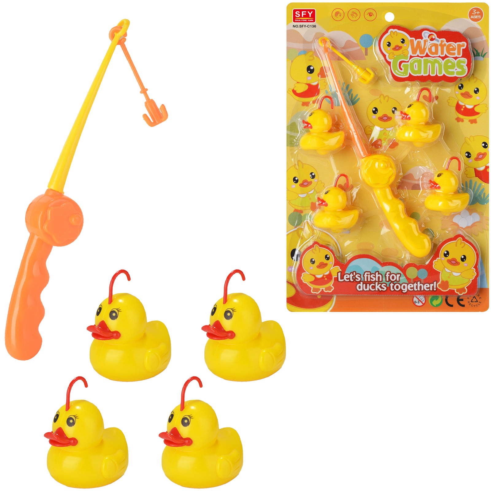 Zestaw do Łowienia Kaczek "Water Games" - Wspaniała Zabawa w Kąpieli i Nie Tylko! Przedstawiamy uroczy zestaw do łowienia kaczek z serii "Water Games", który zamieni każdą kąpiel, basenik czy nawet miskę z wodą w prawdziwe wędkarskie pole do popisu! Ta wesoła zabawka zapewni godziny radości i pomoże rozwijać zdolności manualne najmłodszych. Cechy produktu: Kompletny Zestaw: W skład zestawu wchodzi jedna żółto-pomarańczowa wędka z haczykiem oraz cztery urocze, żółte kaczuszki z pętelkami na głowach, gotowe do złowienia. Wesołe Kaczuszki: Każda kaczuszka jest lekka i pływająca, a specjalne pętelki ułatwiają celowanie i zaczepianie ich haczykiem wędki. Ich klasyczny wygląd i intensywny kolor przyciągają uwagę dziecka. Rozwój Umiejętności: Zabawa w łowienie kaczek doskonale wpływa na rozwój koordynacji ręka-oko, precyzji ruchów oraz cierpliwości u dziecka. Jest to także świetny sposób na zachęcenie maluchów do kąpieli. Idealna do Wody: Zabawka jest przeznaczona do użytku w wodzie, dzięki czemu sprawdzi się podczas codziennej kąpieli w wannie, zabawy w baseniku ogrodowym czy nad jeziorem (pod nadzorem osoby dorosłej). Bezpieczeństwo: Produkt jest przeznaczony dla dzieci w wieku 3 lat i starszych (zgodnie z oznaczeniem "3+" na opakowaniu), co gwarantuje bezpieczeństwo użytkowania dla tej grupy wiekowej. Atrakcyjne Opakowanie: Zestaw jest zapakowany w kolorowy blister z wizerunkami wesołych kaczuszek, co czyni go idealnym pomysłem na prezent na każdą okazję. Na opakowaniu widnieje hasło "Let's fish for ducks together!", zachęcające do wspólnej zabawy. Wielkość opakowania: 26x17x3 cm Idealny dla: Dzieci uwielbiających zabawę w wodzie. Rodziców szukających edukacyjnych zabawek do kąpieli. Prezentu na urodziny, Dzień Dziecka czy inną okazję. Zapewnij swojemu dziecku mnóstwo śmiechu i wodnej przygody z naszym zestawem do łowienia kaczek!