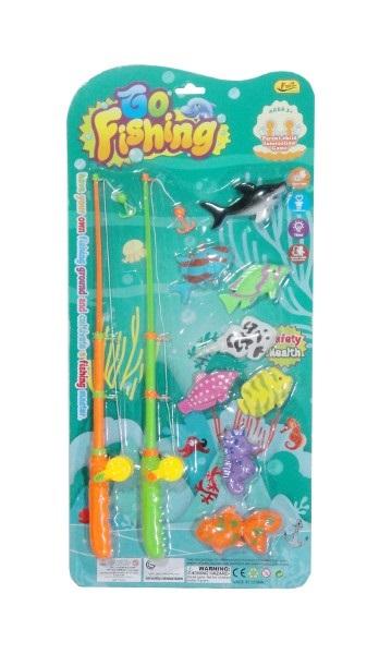 2 kolorowe wędki wraz z haczykiem dla małych wędkarzy. W zestawie oprócz wędek można znaleźć 8 kolorowych zwierzątek wodnych w różnych kształtach. Rybki i haczyki dodatkowo są zakończone magnesem. Całość zapakowana jest w kartonową podstawkę z przezroczystym kloszem. Zabawka dla dzieci powyżej 3 lat. Podane wymiary są wymiarami opakowania.