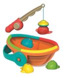 • Wędka z żyłką magnetyczną działa w prosty i natychmiastowy sposób. W zestawie z 4 rybkami, które należy włożyć do przegródki w odpowiednim kolorze.