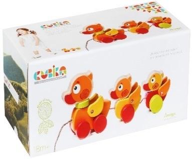 Drewniana zabawka wykonana jest z drewnianych elementów. Dzięki tej zabawce dzieci rozwijają koordynację ruchową, równowagę oraz wzmacniają mięśnie. Gdy zabawka jedzie z tyłu, maluchy opanują przestrzeń za plecami. Wymyślając różne historie z gier, dzieci poprawią swoją wyobraźnię, fantazję i zdolności motoryczne. Ta zabawka Wędrujące kaczątka pomoże Twojemu dziecku rozwinąć małą motorykę i percepcję sensoryczną.