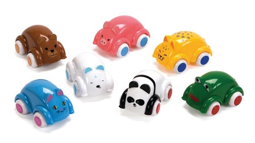 Wesołe Autka Chubbies w kształcie zwierzątek. 9 wzorów, różne kolory, wybierane losowo. Dla dzieci w wieku od 12 miesięcy.