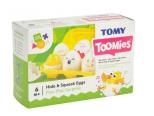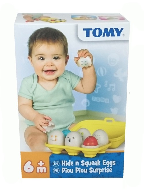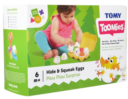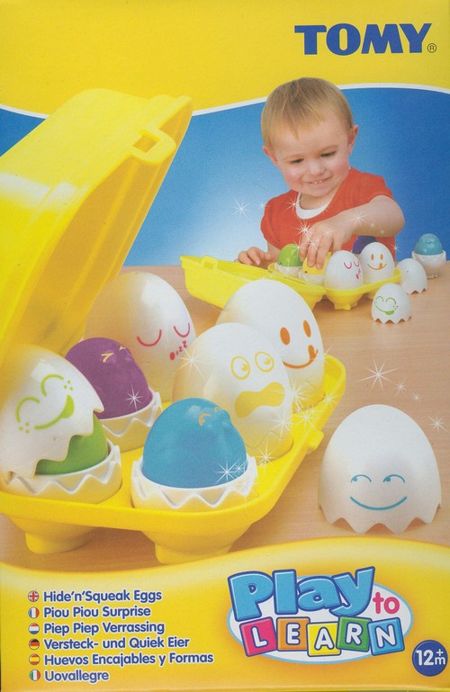 Sześć jajeczek, wewnątrz których kryją się wesołe pisklaki. Dzieci usłyszą radosne ćwierkanie wciskając ich główki. Różne kształty umieszczone na spodzie pudełka służą jako sorter. Zabawka dla dzieci w wieku powyżej 12 miesięcy.