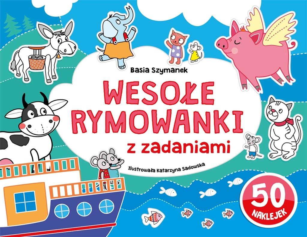 Bloki z zabawnymi rymowankami: a na ich stronach: kolorowanki, proste zadania i ozdabianie scenek naklejkami. Zebrane tutaj propozycje zabaw rozbudzą wyobraźnię dziecka i pozwolą miło i wesoło spędzić czas.