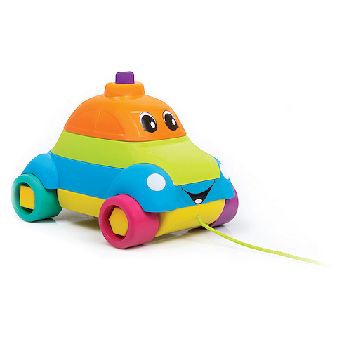 Wesołe Auto to zabawka sorter do ciągnięcia.  Aby zbudować auto należy ułożyć elementy jeden na drugim. Przy montażu kół, należy znaleźć właściwy kształt.