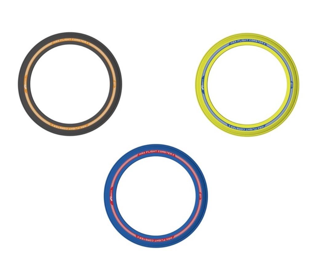 Frisbee Max Flight Coaster jest wielobarwnym, okrągłym dyskiem o średnicy 10 cali, ważącym zaledwie 80 gram. Specjalnie zaprojektowana konstrukcja łącząca wewnętrzny rdzeń z doskonale wyprofilowaną obręczą pokrytą strukturą umożliwia pokonywanie długiego dystansu. Dysk został wykonany z miękkiego materiału, dzięki któremu zabawa jest jeszcze przyjemniejsza.