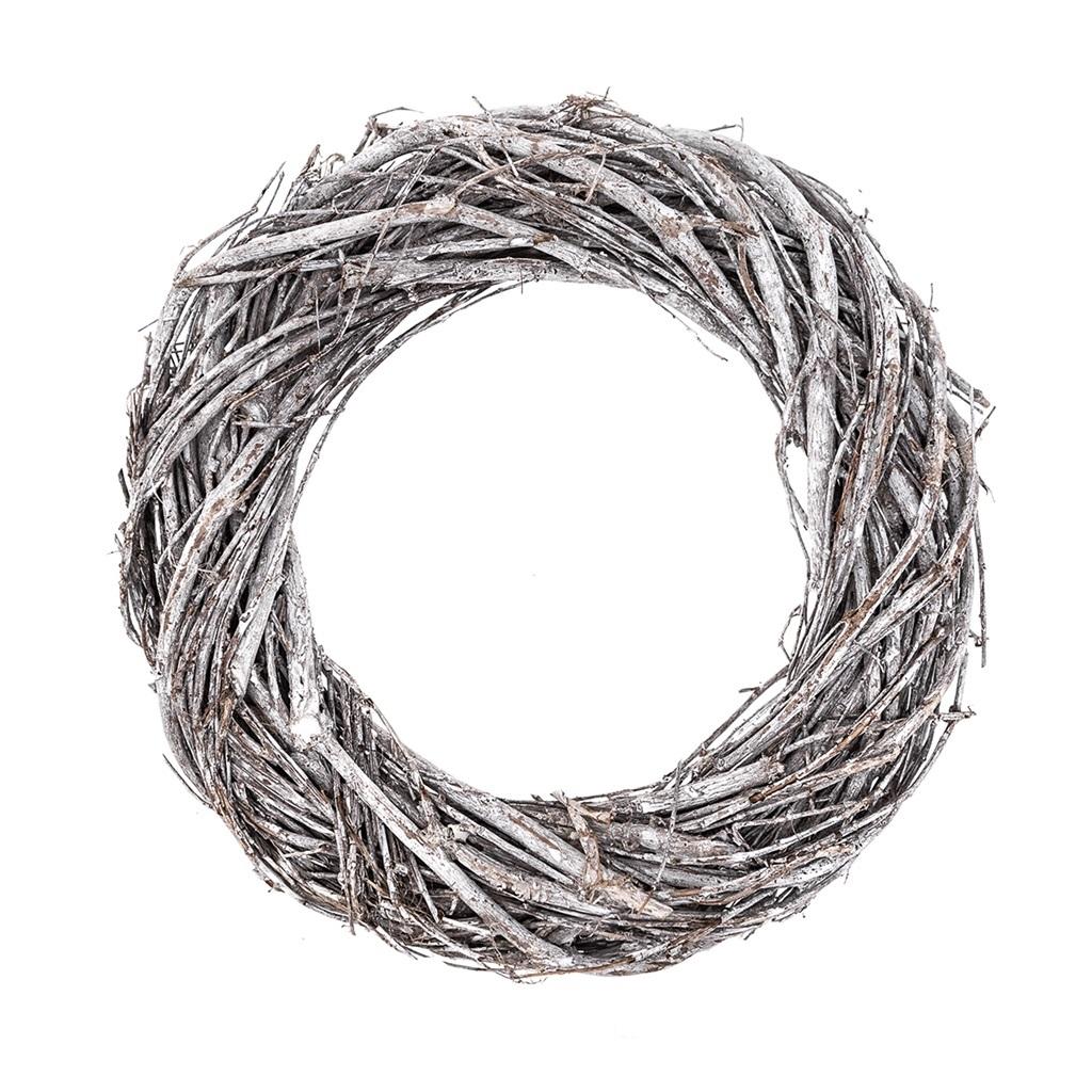 Naturalny, bielony wianek z gałązek. Stanowi idealną bazę przy tworzeniu oryginalnych dekoracji stołu, drzwi i okien. Świetnie sprawdza się zarówno we wnętrzach jak i w ogrodzie lub na tarasie.