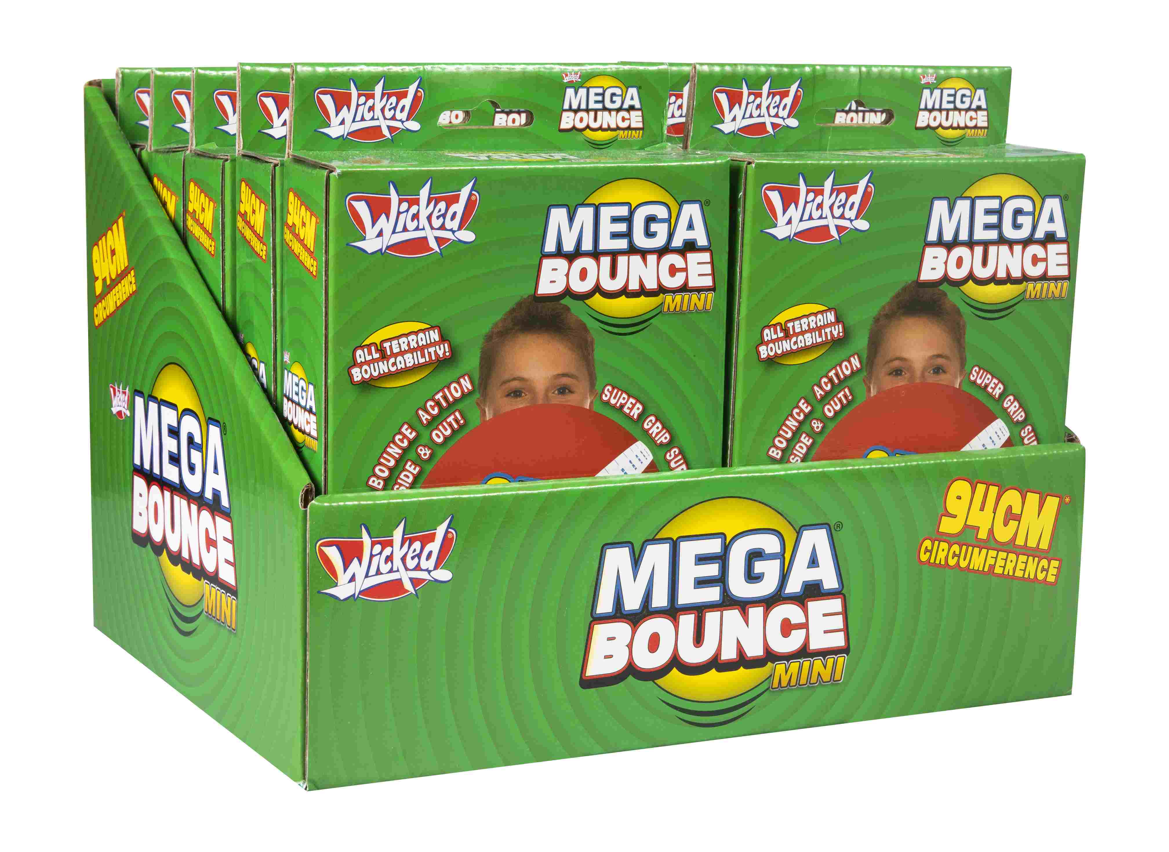 Ta nadmuchiwana piłka o obwodzie 94 cm zapewnia taką samą zabawę jak jej większe odpowiedniki, Mega Bounce Junior i XL, ale w bardziej kompaktowym rozmiarze.
