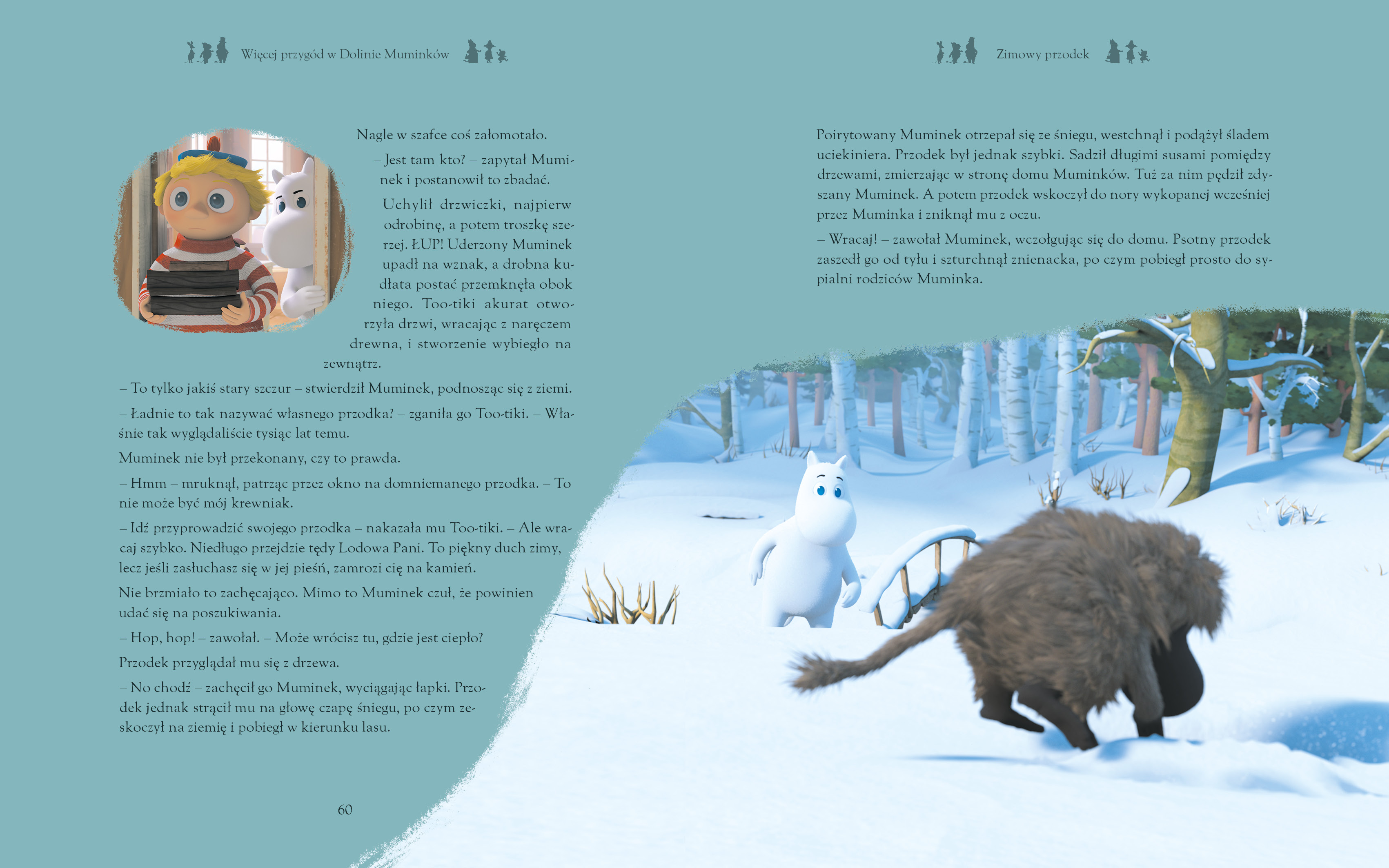 Opowieści o Muminkach zostały przetłumaczone na ponad 30 języków i doczekały się niemal 20 ekranizacji. Ten zbiór, zainspirowany opowiadaniami Tove Jansson, został uzupełniony o wyjątkowe ilustracje z najnowszego serialu Dolina Muminków; w brytyjskiej wersji pani Filifionce głosu udzieliła Kate Winslet!