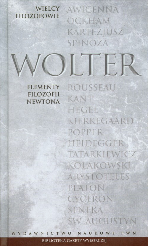 Wolter (lub Voltaire, a właściwie François-Marie Arouet) to ikona epoki oświecenia. Błyskotliwy, irytujący, wesoły, przemądrzały, niedbały, oczytany i obeznany ze wszystkimi naukami, ironiczny i zarazem wszędzie zaangażowany lub, jakby powiedzieli jego liczni wrogowie, wszędzie wciskający swój nos i swoje trzy grosze. Miał niewyparzony język, co poniekąd było w modzie w tamtym czasie, i odwagę piętnowania nietolerancji, zwłaszcza religijnej. Gość na wielu dworach królewskich – i w Bastylii; bywalec salonów, a także, jak chcą niektórzy, mason. Choć nienawidził przesądów, sam nie raz zgrzeszył wiarą w propagandę co bardziej inteligentnych władców Europy, a o jego słabości do carycy Katarzyny II krążyły mniej lub bardziej prawdziwe legendy. Elementy filozofii Newtona zwracają uwagę na niedocenianą często rolę przełomu, jaki się dokonał za sprawą Sir Isaaca – który miał, zaznaczmy, prawdziwe szczęście trafić na świetnego popularyzatora w osobie Woltera. Anegdotę o jabłku spadającym na głowę Newtona znamy właśnie dzięki Wolterowi.