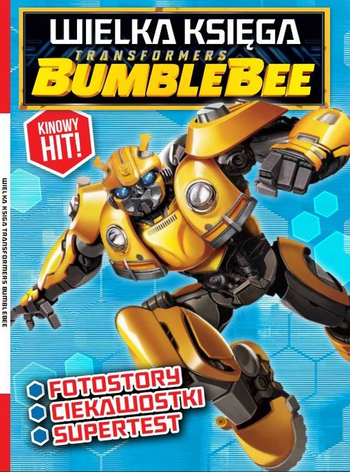To książka dla fanów Transformersów. Zbudowana jest z dwóch części. Część kolorowa, w której przedstawiamy w formie fotostory filmową historię Bumblebee na podstawie kinowego hitu który w styczniu 2019 wejdzie do kin, plus ciekawostki dotyczące głównego bohatera – Bumblebee oraz przewodnik po innych postaciach z filmu. Część czarno-biała to supertest dla fanów Transformersów, tj. logiczne zadania oraz kolorowanki.