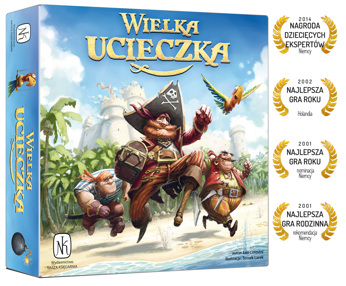 Polska edycja światowego hitu „Cartagena”. Wzbogacona o 6 wariantów rozgrywki! Każdy gracz posiada sześciu piratów, którym pomaga w ucieczce z lochów. Piraci muszą dotrzeć do czekającej na nich łódki. Jest ona jednak za mała i nie dla wszystkich wystarczy w niej miejsca! Musisz w przemyślany sposób przemieszczać swoich piratów i sprytnie korzystać z ekwipunku należącego do innych graczy. Nie zawsze wygrywa ten, który biegnie najszybciej! Czasami warto cofnąć się, aby zdobyć przedmiot przydatny w dalszej ucieczce. Gra kończy się, gdy któryś z graczy umieści w łodzi wszystkich swoich piratów. Zostaje on zwycięzcą i szczęśliwie odpływa, pozostawiając kompanów na pastwę losu. Proste zasady gry! • Plansza przedstawia drogę ucieczki. Znajdują się na niej rysunki pirackich symboli – takie same umieszczone są na kartach, za pomocą których gracz przemieszczają swoich piratów. • W swojej kolejce wykładasz kartę i przesuwasz jednego ze swoich piratów na pierwsze wolne pole przedstawiające symbol z karty. • Gdy skończą ci się karty, będziesz musiał cofnąć swojego pirata, aby zdobyć dodatkowe karty – nie wystarczy więc biec jak najszybciej do przodu! Zdobyte nagrody: NAGRODA DZIECIĘCYCH EKSPERTÓW (Niemcy, 2014) NAJLEPSZA GRA ROKU (Holandia, 2002) NAJLEPSZA GRA ROKU (nominacja, Niemcy, 2001) NAJLEPSZA RODZINNA GRA PLANSZOWA (rekomendacja Spiel der Spiele, Niemcy, 2001)