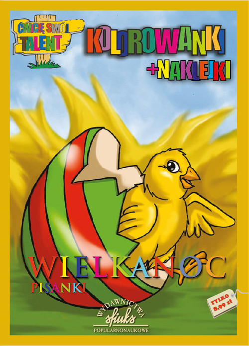 Hej, Dzieciaki!Ta książeczka jest specjalnie dla Was !Zanim pomalujecie pierwsze pisanki i wypełnicie nimi koszyczek ze święconką, możecie miło spędzić czas naklejając naklejki i kolorując obrazki w Waszych kolorowankach. Dzięki nim poznacie inną rodzinę, która tak samo jak Wasza, przygotowuje się do Świąt Wielkanocnych oraz jej zwyczaje i zabawy. Poznacie też historię Jezusa. A na pewno wiele radości dostarczy Wam kolorowanie bajecznych pisanek i odczytywanie krótkich zabawnych wierszyków.