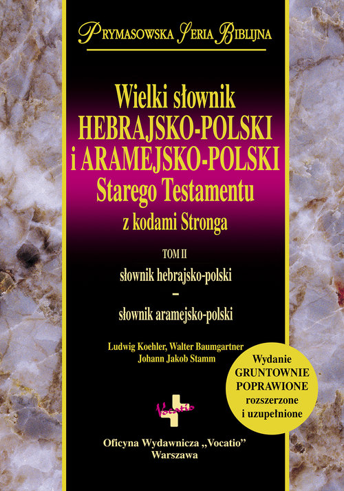 Trzecie wydanie Wielkiego słownika hebrajsko-polskiego i aramejsko-polskiego Starego Testamentu autorstwa L. Koehlera, W. Baumgartnera i J.J. Stamma, stanowi rezultat gruntownego przepracowania pierwszego wydania, które ukazało się w 2008 r. jako 30. tom „Prymasowskiej Serii Biblijnej” (PSB) i zostało wznowione w 2013 r., wzbogaconego o istotną zawartość Hebrajsko-polskiego i aramejsko-polskiego słownika Stronga, który ukazał się w 2017 r. jako jej tom 45. Obydwa monumentalne dzieła zostały z ogromnym pożytkiem przyswojone i są owocnie wykorzystywane przez biblistów polskich oraz tych biblistów zagranicznych, zwłaszcza w krajach ościennych, którzy znają język polski. Wzbogacenie klasycznego już Wielkiego słownika polega na wprowadzeniu do niego kilku ważnych dodatków. Pierwszy to numeracja poszczególnych haseł (BH – hebrajskich i BA – aramejskich), sprzyjająca ich wyraźniejszemu uporządkowaniu i pomagająca odnaleźć te, których potrzebujemy. Drugą zmianą jest umieszczenie łacińskiej transliteracji słów hebrajskich i aramejskich. Wytrawni znawcy oryginalnych języków biblijnych jej nie potrzebują, przyda się ona natomiast tym czytelnikom i komentatorom ksiąg świętych, którzy – bardzo często, aby wyjść naprzeciw potrzebom pastoralnym – chętnie skorzystają z takiej pomocy. Trzecim dodatkiem są kody podane w odsyłaczach do innych terminów występujących w tym słowniku, co w połączeniu z numeracją haseł powinno znacznie przyspieszyć odnalezienie i pełniejsze zrozumienie tego hasła, o które chodzi. Czwarty dodatek to dopisanie tzw. kodów Stronga – H, co jeszcze bardziej ułatwi porównywanie znaczenia i występowania poszczególnych słów. Ks. prof. dr hab. Waldemar Chrostowski Laureat Nagrody Ratzingera (2014) Uniwersytet Kardynała Stefana Wyszyńskiego
