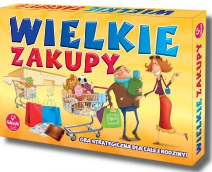 „Wielkie zakupy” to fascynująca gra strategiczna dla całej rodziny. Gracze wybierają się na wielkie zakupy, kto zaoszczędzi najwięcej, kto będzie łowcom promocji, kto straci wszystkie pieniądze? Zawartość: plansza do gry 25 kart niespodzianek 108 plakietek z obrazkami produktów banknoty do gry 4 pionki i 2 kostki instrukcja Liczba graczy: 2-4 Wiek: od 7 lat