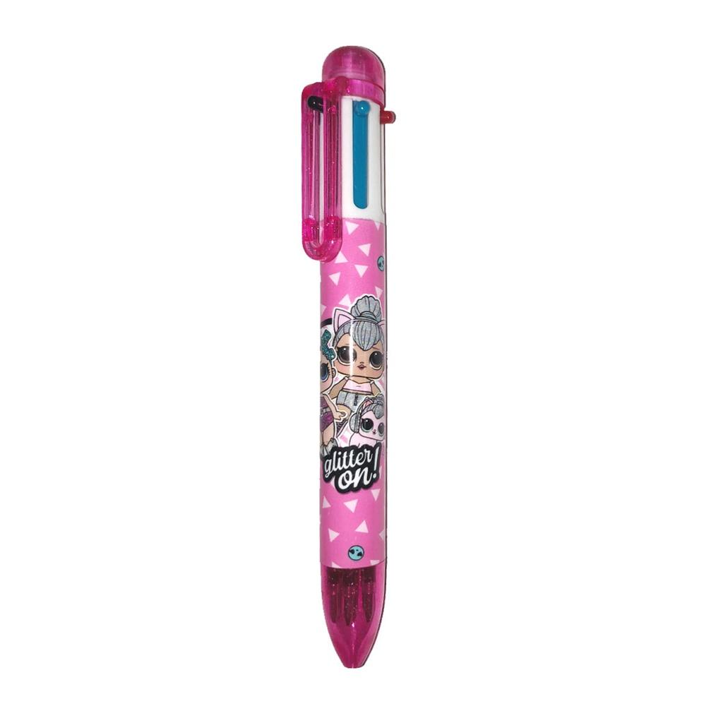 L.O.L Surprise, Różnokolorowy Długopis. Różnokolorowy długopis. Zawiera 6 kolorów: niebieski, czarny, czerwony, fioletowy, zielony i pomarańczowy. Bardzo wygodny w trzymaniu. Pięknie wykonany, ozdobiony grafikami Dziewczynki L.O.L. Kolorystyka: delikatne odcienie cukierkowego różu. Niezbędny dodatek do każdego piórnika.