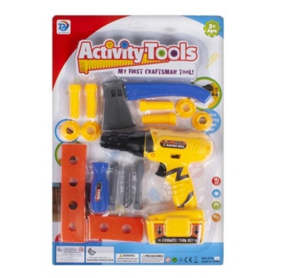 Plastikowa wiertarka z wieloma akcesoriami będzie wspaniałą zabawką dla każdego małego majsterkowicza.