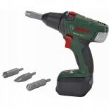 Wiertarko-wkrętarka marki Klein pochodzi z serii zabawek Bosch mini powstałej na licencji firmy Bosch, dlatego też jest kopią faktycznie istniejącego narzędzia tej marki. Zabawka jest w kolorze ciemnej zieleni z elementami czarnymi, srebrnymi bitami, czerwonym przyciskiem spustu, a także czerwonym kontrastującym logo Bosch. Wiertarko-wkrętarka ma regulowane obroty w prawą i lewą stronę, włączane czerwonym przyciskiem, z boku zabawki, jak również dwie prędkości pracy, regulowane czerwonym przełącznikiem na czole urządzenia. Dodatkowo zabawka ma w komplecie cztery srebrne wymienne bity (wiertła), a także w w podstawie urządzenia białą diodę oświetlającą miejsce pracy. Zabawka jak prawdziwa ma wygodny uchwyt z gumową powierzchnią ułatwiającą utrzymanie zabawki w dziecięcych dłoniach. Wiertarko-wkrętarka podczas swojej pracy wydaje realistyczne dźwięki imitujące odgłosy pracy prawdziwego urządzenia. Wszystkie elementy zestawu są wykonane z plastiku, pozbawione ostrych krawędzi i całkowicie bezpieczne dla dziecka. Bawiąc się wiertarko-wkrętarką dzieci już od najmłodszych lat w bezpieczny sposób będą mogły wcielić się w rolę majsterkowicza, zapewniając sobie realistyczne doświadczenie korzystania z tego narzędzia. Zabawka umożliwia maluchom kreatywną zabawę i doskonalenie umiejętności manualnych. Dzieci uwielbiają naśladować rodziców wykonujących codzienne czynności domowe lub w nich uczestniczyć, jednak nie zawsze jest to możliwe ze względów bezpieczeństwa, a dzięki tej całkowicie bezpiecznej dla dzieci, zabawkowej wiertarko-wkrętarce każdy mały majsterkowicz może bezpiecznie robić to, co jego opiekunowie. Zabawka wymaga użycia baterii, które nie są zawarte w zestawie.