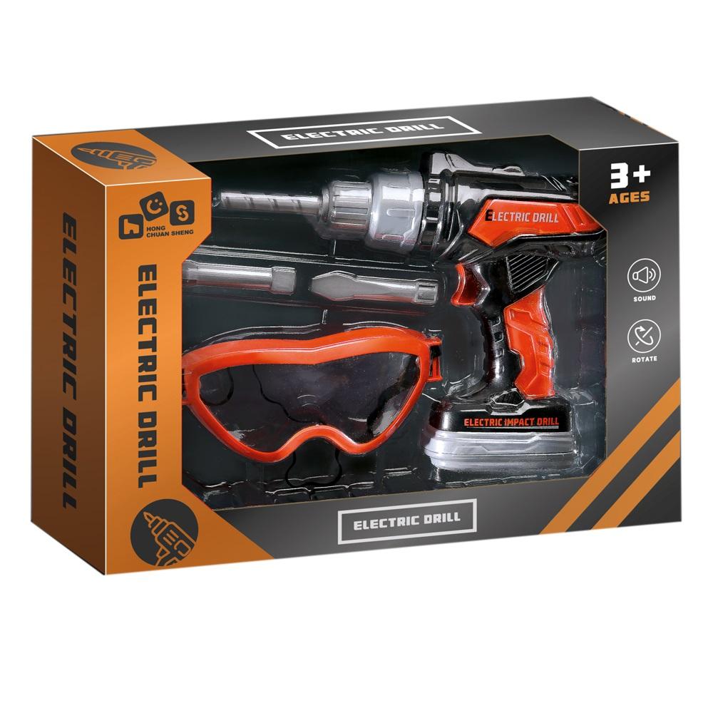 Wiertarko-wkrętarka na baterie z różnymi końcówkami oraz okularami ochronnymi. Wymagane baterie - 2xAA (niedołączone).