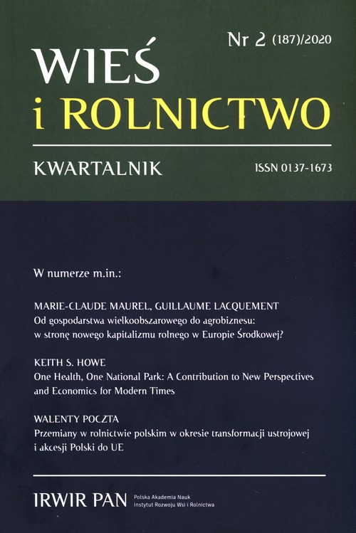 „Wieś i Rolnictwo" to interdyscyplinarne czasopismo naukowe, poświęcone badaniom obszarów wiejskich, założone w 1973 r. Celem czasopisma jest publikowanie wybranych artykułów i recenzji na temat szerokiego zakresu zagadnień dotyczących obszarów wiejskich i rolnych analizowanych przez specjalistów reprezentujących nauki społeczne i inne nauki zajmujące się rozwojem obszarów wiejskich. Czasopismo przyjmuje teksty autorów reprezentujących różne kraje, instytucje badawcze, decydentów, organizacje pozarządowe i inne instytucje prezentujące ważne tematy i znaczące badania w zakresie teorii, polityki i praktyki społecznej. Naszym celem jest stymulowanie wymiany pomysłów/koncepcji, zaawansowanych wyników badań, nowych propozycji metodologicznych i praktycznych rozwiązań problemów stojących przed społecznościami wiejskimi i gospodarkami. Artykuły Od gospodarstwa wielkoobszarowego do agrobiznesu: w stronę nowego kapitalizmu rolnego w Europie Środkowej? Marie-Claude Maurel, Guillaume Lacquement 7-34 „Jedno Zdrowie”, jeden park narodowy: przyczynek do nowych perspektyw i gospodarki na nowe czasy Keith S. Howe 35-56 Przemiany w rolnictwie polskim w okresie transformacji ustrojowej i akcesji Polski do UE Walenty Poczta 57-77 Użyczenie jako alternatywa dla dzierżawy ziemi rolniczej Wiesław Musiał 79-98 Transformacja morfologiczna wsi włączonych do miasta po II wojnie światowej na przykładzie Łodzi Tomasz Figlus 99-130 Przemiany społeczno-gospodarcze wsi Przybyszew w latach 1918–2018 Marek Kłodziński 131-151 RECENZJE I OMÓWIENIA Recenzja książki Andrzeja W. Kaczorowskiego, Marzeny Pokory-Kalinowskiej i Grzegorza Cymińskiego Droga rolników od „Solidarności” do niepodległości: 1978–20181 Aleksandra Bilewicz 153-156