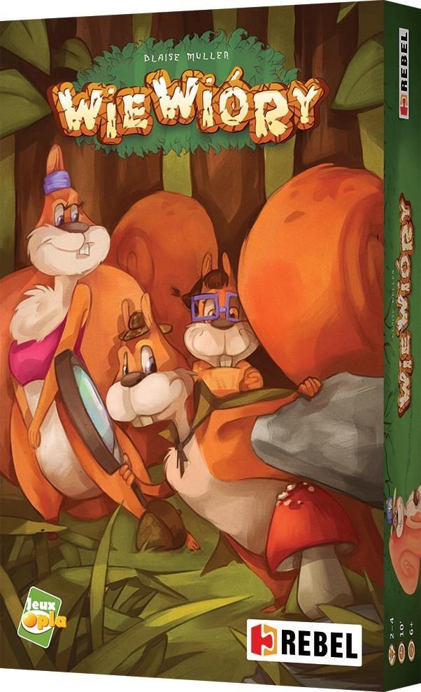 Ale co tam! Damy radę! Trzeba tylko odnaleźć ukryte jedzenie. Żeby to zrobić, musimy sobie przypomnieć, gdzie ulokowaliśmy nasze spiżarnie. Znajdziemy swoje skrytki wśród żółtych, niebieskich i czerwonych grzybów, liści oraz kamieni! Wiewióry wydają się być zwodniczo nieskomplikowaną grą. Między Twoją Wiewiórą, a orzeszkiem znajdują się tylko trzy kafelki, a jedyne co Ty musisz zrobić, to po kolei powiedzieć, co znajduje się na ich odwrocie. Najpierw oczywiście strzelasz, powiedzmy ""Liść!"" - odwracasz i udało się! Faktycznie był tam liść. Zostawiasz kafelek obrócony z liściem do góry. Następny... może kamień? Odwracasz go i okazuje się, że niestety nie. Na drugiej stronie kafelka był grzyb. Szkoda, Twoja runda się kończy, ale zaraz będzie znowu Twoja kolejka... ale chwila, co było po drugiej stronie pierwszego kafelka?? Jakoś nie zapamiętałeś... A niech to, ktoś idzie w przeciwnym kierunku i właśnie obrócił Twój kafelek i teraz już zupełnie się pogubiłeś. Zaraz, że jak?! Inny gracz właśnie zdobył orzeszka, a to zmienia zasady i teraz masz odgadywać kolory?! A już zapamiętałeś, że ma być liść, liść, kamień... Skąd masz wiedzieć w jakich były kolorach?!