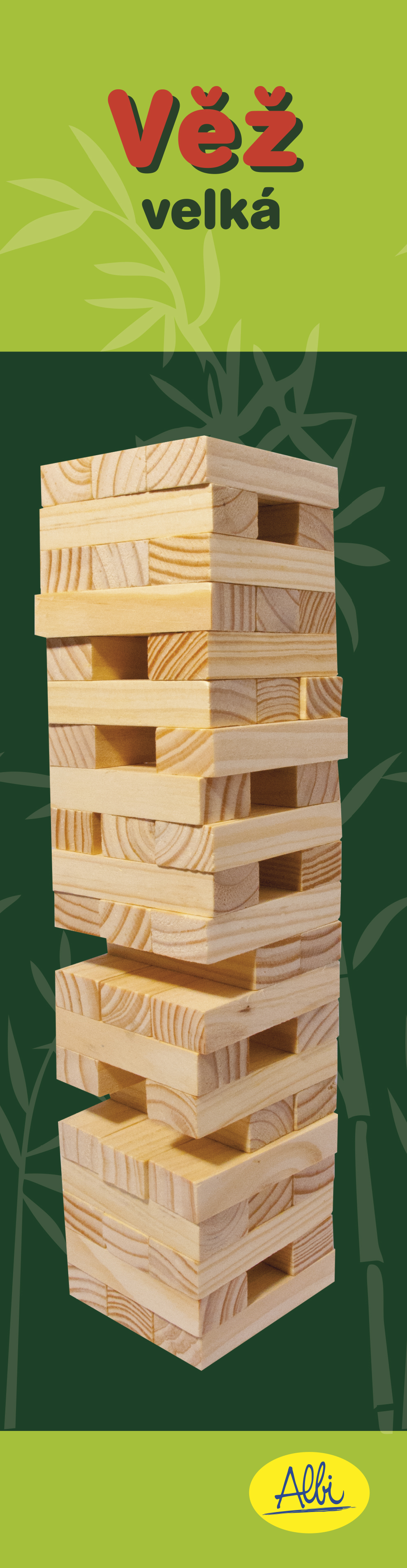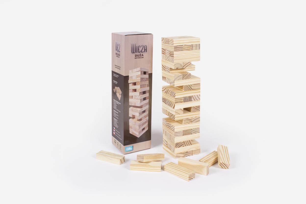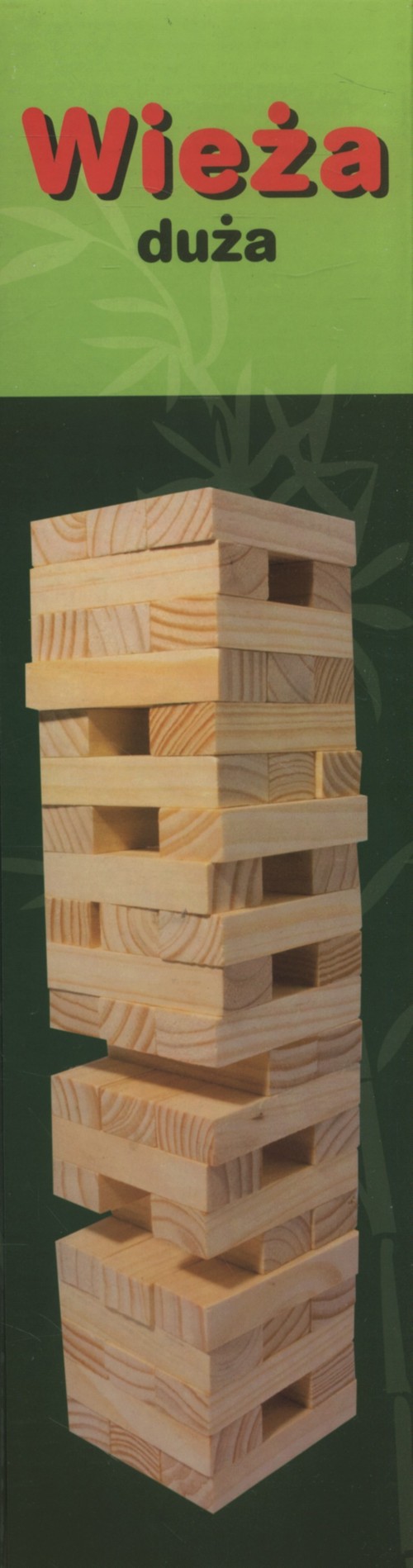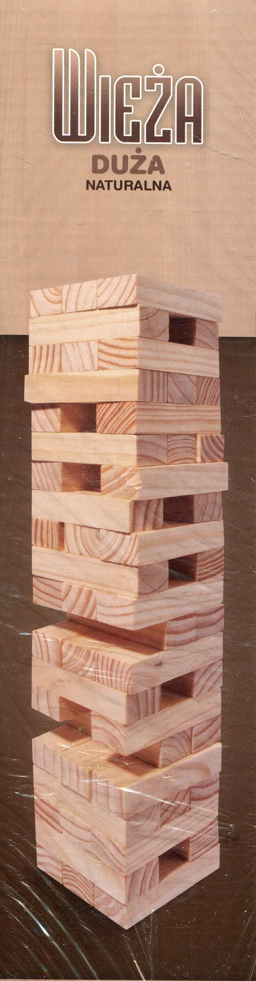 Zestaw 60 drewnianych klocków o wymiarach 7,5x1,5x2,5 cm do gry zręcznościowej. Gracz, który zburzył wieżę przegrywa. Wiek graczy: 6+ Liczba graczy: 2+ Czas rozgrywki: 20 minut