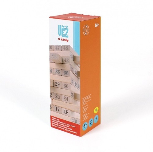 Grając w jengę możesz użyć tradycyjnych reguł gry. Zbudujcie wieżę i po kolei wyciągajcie klocki ze środka i układajcie je na górze.. Wariant gry z kostką: wyciągnij tyle klocków, ile wypadło oczek. Wariant gry z 3 kostkami: możesz tworzyć dowolne kombinacje mnożąc lub dodając cyfry które wypadły na kostkach. Zawartość: 48 numerowanych klocków. Wiek graczy: 6+ Liczba graczy: 2+ Czas rozgrywki: 20 minut.