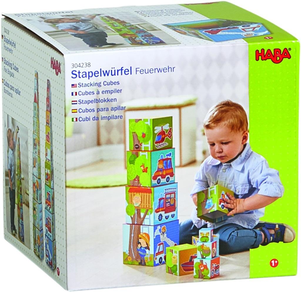 Wieża z kostek Straż pożarna marki HABA to zabawka dla niemowląt w wieku od 12 miesięcy. Z 10 różnej wielkości sześcianów Twój maluch może zbudować wiałą, strażacką wieżę. Bryły są wykonane z lekkiego materiału, dlatego są bardzo lekkie i łatwe w przenoszeniu i montażu. Na ich zewnętrznej stronie jest wiele ciekawych motywów do oglądania. Przedstawiają one typowe pojazdy i czynności straży pożarnej oraz inne, ciekawe przedmioty. W ten sposób dzieci poprzez zabawę w łatwy poznają też liczby od 1 do 10. Każdy z sześcianów można schować jeden w drugim, dzięki czemu zajmują niewiele miejsca w dziecięcym pokoju. Zawartość pudełka:10 sześcianów różnej wielkości do układania wieży.