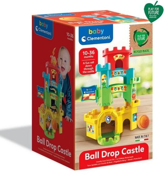 Dziecko może obserwować trasę piłki wzdłuż ścieżki wewnątrz zamku i wzdłuż murów: upuść piłkę na wierzchołku wieży i patrz, jak porusza się przez różne poziomy, aż zatrzyma się na dziedzińcu przed wejściem.