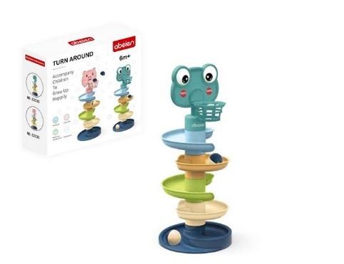 Zabawna wieża z piłeczkami do zabawy dla maluszka. Dziecko chwyta jedną z kolorowych, grzechoczących piłeczek, a następnie wrzuca je na samą górę, piłeczka toczy się na sam dół wieży i wypada jednym wyjściem. Następnie dziecko może rzucić piłeczkę do kosza, który jest umieszczony na samej górze wieży. Produkt zapakowany w kartonowe opakowanie. Zabawka dla dzieci od 18 miesiąca życia. Podane wymiary stanowią wymiar opakowania.