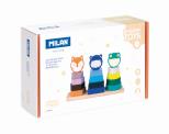 Drewniana zabawka edukacyjna "Wieża zwierząt". Idealna do nauki orientacji przestrzennej, postrzegania kolorów i kształtów. Zawiera 15 elementów do układania w 3 różnych kształtach i 3 drewniane drążki. Zachęca do rozwijania umiejętności motorycznych, logiki i koordynacji wzrokowej. Zalecane od 12 miesiąca życia.