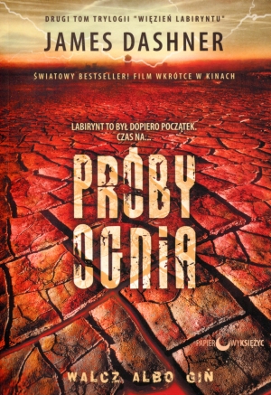 Światowy bestseller! Przeczytaj książkę zanim obejrzysz jej ekranizacjęw kinach we wrześniu 2015 roku!Próby Ognia to drugi tom bestsellerowej trylogii Więzień Labiryntu, amerykańskiego autora Jamesa Dashnera.To jedna z najciekawszych i nieustannie trzymających w napięciu serii książkowych, która trafia do miłośników takich pozycji jak Igrzyska Śmierci czy Niezgodna.Więzień Labiryntu czyli pierwszy tom opowieści skończył się niezwykle emocjonującym zwrotem akcji, który sprawia, że wszyscy miłośnicy serii natychmiast sięgną po Próby Ognia.Prawa do trylogii Więzień Labiryntu zostały sprzedane do ponad dwudziestu krajów, a wytwórnia Twentieth Century Fox pracuje aktualnie nad adaptacją filmową całej serii. Niedawno na ekrany wszedł film Więzień Labiryntu, a ekranizacja książki Próby Ognia będzie miała swą premierę w kinach we wrześniu 2015 roku.Znalezienie wyjścia z Labiryntu miało być końcem. Żadnych więcej niespodzianek, żadnych puzzli. I żadnego uciekania. Thomas był przekonany, że jeśli Streferzy zdołają się wydostać, odzyskają swoje dawne życie i wspomnienia.W Labiryncie życie było łatwe. Mieli jedzenie, schronienie i względne bezpieczeństwo. Dopóki Teresa nie zapoczątkowała końca. Ale w świecie poza Labiryntem koniec został zapoczątkowany już dawno temu.Spalona przez Pożogę i wysuszona z powodu nowego surowego klimatu, Ziemia stała się krainą zniszczenia, penetrowaną przez Poparzeńców, ludzi zarażonych Pożogą.Dlatego Streferzy wciąż nie mogą przestać uciekać. Zamiast upragnionej wolności, muszą stawić czoła jeszcze jednej próbie. Muszą przejść przez najbardziej spaloną część świata i dotrzeć do celu w ciągu dwóch tygodni.Ale DRESZCZ przygotował im na tej drodze wiele niespodzianek.