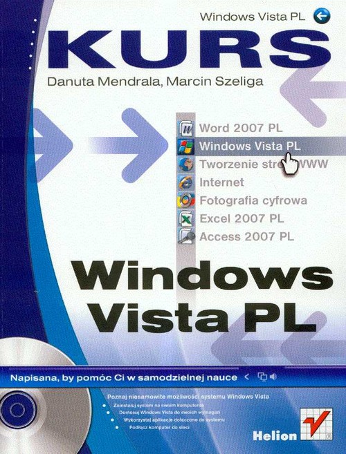 Zainstaluj system na swoim komputerze Dostosuj Windows Vista do swoich wymagań Wykorzystaj aplikacje dołączone do systemu Podłącz komputer do sieci System operacyjny jest najważniejszą aplikacją instalowaną na komputerze. Na rynku niekwestionowaną palmę pierwszeństwa wśród producentów tego typu oprogramowania dzierży firma Microsoft. Windows Vista to jej najnowszy produkt, będący efektem prawie 10-letniej pracy zespołu programistów i testerów. Vista to niezwykle intuicyjny, łatwy w obsłudze i wydajny system operacyjny. Jego możliwości docenią zarówno początkujący, jak i zaawansowani użytkownicy komputerów. Niezwykle istotne zalety systemu to jego ogromne bezpieczeństwo i rozbudowane mechanizmy pracy w sieci. Dzięki książce ""Windows Vista PL. Kurs"" poznasz ten funkcjonalny i niezawodny system operacyjny. Dowiesz się, w jakich wersjach jest oferowany i która z nich jest najbardziej odpowiednia dla Ciebie. Nauczysz się instalować oraz konfigurować system, pracować z oknami, korzystać z Eksploratora Windows i menu Start. Opanujesz zasady korzystania z systemu plików, wyszukiwania i szyfrowania zbiorów, drukowania z poziomu Windows Vista i zarządzania kontami użytkowników. Poznasz zadania administratora systemu, a także dowiesz się, w jaki sposób podłączyć komputer do sieci oraz skorzystać z poczty elektronicznej i przeglądarki WWW. Opis wersji systemu Windows Vista Instalacja i aktualizacja systemu Uruchamianie i zatrzymywanie Windows Vista Konfigurowanie menu Start i paska zadań Praca z plikami i katalogami Konta użytkowników Panel Sterowania Odtwarzanie muzyki i filmów Przeglądanie cyfrowych zdjęć Tworzenie kopii zapasowych Przeglądanie witryn WWW Korzystanie z Windows Mail Zabezpieczanie systemu