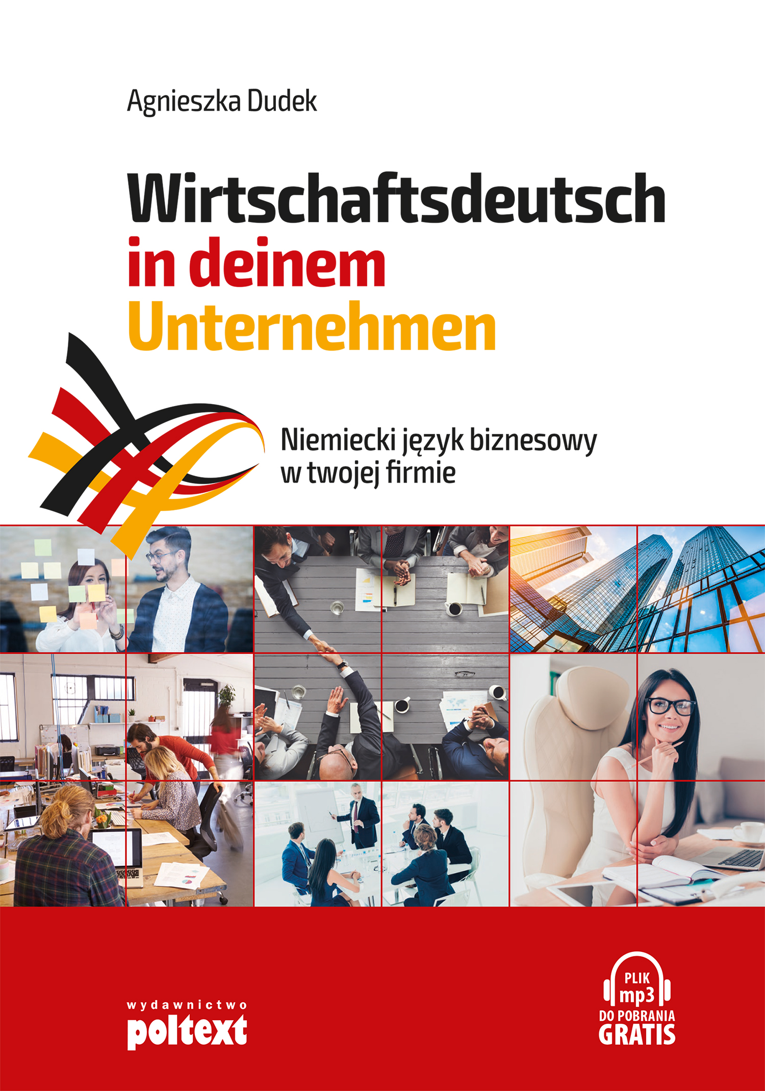 Język niemiecki Używasz języka niemieckiego w pracy, podczas wyjazdów czy spotkań służbowych? Autorka podczas indywidualnych zajęć miała okazję poznać potrzeby pracowników firm i każde pojedyncze słowo niezbędne do korespondencji handlowej czy rozmów biznesowych. Dysponując wiedzą i doświadczeniem lektora języka niemieckiego stworzyła koncepcję materiałów do nauki bazującą na powtarzaniu słów i całych fraz – gdyż (jak dowodzą tego badania nad pamięcią) przynajmniej trzykrotne powtórzenie informacji daje największą szansę na przeniesienie jej do pamięci długotrwałej. Ta metoda różni się od typowych szkolnych (podręcznikowych) metod nauczania i ćwiczeń. Materiał książki został podzielony na krótkie moduły tematyczne, aby nie zarzucać osoby uczącej się zbyt dużą ilością nowego słownictwa. W poszczególnych częściach książki znajdują się gotowe do natychmiastowego wykorzystania w pracy typowe zwroty i frazy. Forma książki umożliwia opanowanie różnorodnego słownictwa zarówno w trakcie zajęć prowadzonych przez lektora, jak i w czasie samodzielnej nauki. Załączony do książki plik MP3 umożliwia szybkie nauczenie się niemieckiego języka biznesowego „ze słuchu”, np. w samochodzie w drodze do pracy i z pracy dzięki powtarzaniu na głos całych gotowych i przydatnych w komunikacji biznesowej zwrotów i wyrażeń. *** AGNIESZKA DUDEK – lektorka języka niemieckiego we Wrocławiu, wyszkolona metodycznie i wyspecjalizowana w prowadzeniu kursów języka niemieckiego w firmach. Prowadzi rozmowy kwalifikacyjne z lektorami i weryfikuje poziom znajomości języka niemieckiego słuchaczy. Rekomendowana najbardziej wymagającym klientom korporacyjnym. Podstawą ich zadowolenia jest skuteczność opanowania języka niemieckiego przez pracowników, co stanowi priorytet w pracy zawodowej autorki.