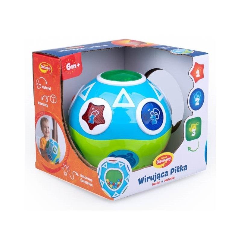 Rozkręć się razem z wirującą piłeczką, która uczy, bawi i zachęca do raczkowania! Zabawka mówi po polsku, ucząc nazw cyferek oraz kształtów, a także odtwarza wesołe melodie i błyska światełkami. Dodatkowo, zabawnie wiruje, "uciekając" przed maluchem i grzechocząc przy tym koralikami, ukrytymi w jednej ze ścianek. Przełącznik trybu umożliwi szybkie przejście z nauki w opcję zabawy oraz całkowite wyłączenie dźwięków po zakończonej zabawie.