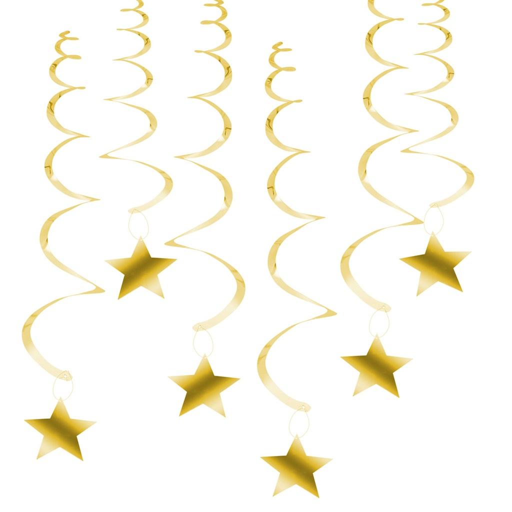 Wirujące serpentyny z linii Celebrate! z gwiazdkami. Stylowa i oryginalna dekoracja na każdą imprezę. Opakowanie zawiera 6 sztuk. Długość: 80 cm. Kolor: złoty.