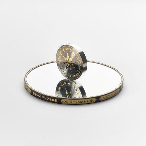 Widok wirującej na stole monety z pewnością jest równie stary jak same monety. Ale dopiero odpowiednio ciężki krążek i kręcący się na równej i gładkiej powierzchni pozwoli uzyskać fascynujący efekt. Pierwszym, którego zafascynował kręcący się coraz szybciej na laboratoryjnym stole masywny krążek był pracujący w Carlsbad Research Center Joseph Bendik. Z tej obserwacji zrodził się naukowy gadżet zwany popularnie Dyskiem Eulera. Jak działa Dysk Eulera Obracający się początkowo pionowo dysk powoli przechyla się obniżając swój środek ciężkość. Jednocześnie jego stykająca się z podłożem krawędź zaczyna toczyć się, zataczając coraz większe kółka. Pozwala to na przekształcenie energii potencjalnej wysokości środka ciężkości dysku w energię kinetyczną jego ruchu obrotowego. Zawartość zestawu: Dysk AstroMedia jest znacznie większy i cięższy od zwykłej monety, a specjalnie wyprofilowane krawędzie sprawiają, że może kręcić się znacznie dłużej - nawet do 2 minut - wydając przy tym niesamowity intrygujący dźwięk! Dodatkowo zakrzywione ku środkowi lustro sprawia, ze dysk nie ucieka i wiruje w miejscu. W skład zestawu Astromedia wchodzi: masywny metalowy dysk o średnicy 7,5 cm oraz grubości 1,3 cm i wadze 433g. lustro do puszczania dysku o średnicy 20 cm kartonowe podstawki do montażu lustra 2 naklejki do ozdobienia dysku instrukcja (język niemiecki)