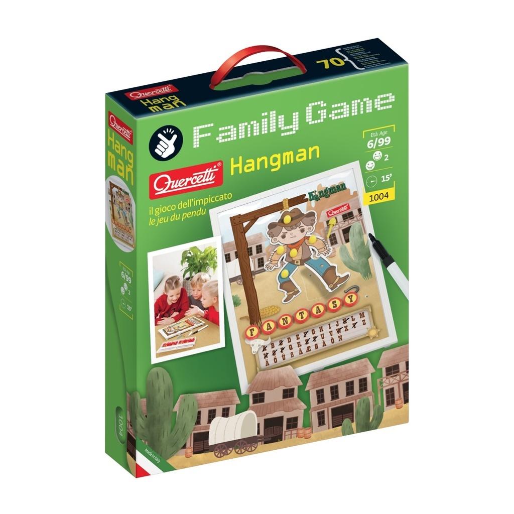 Tradycyjna gra planszowa dla dwóch graczy. Jeden z nich wybiera słowo, a drugi musi je zgadnąć. Opakowanie zawiera perforowaną tablicę oraz specjalne guziki z literami alfabetu.