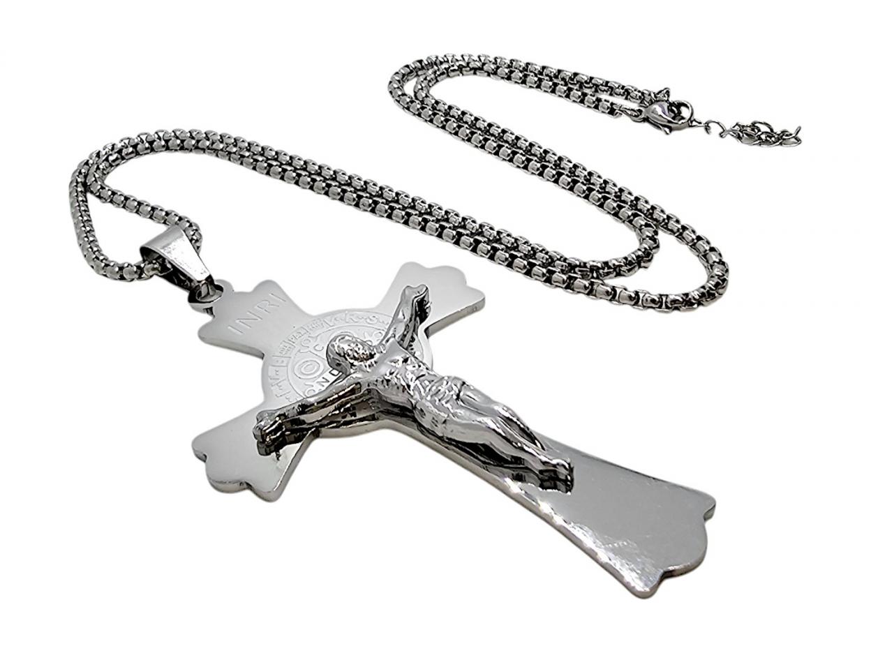 Wyjątkowy Krzyż Św. Benedykta na grubym łańcuszku