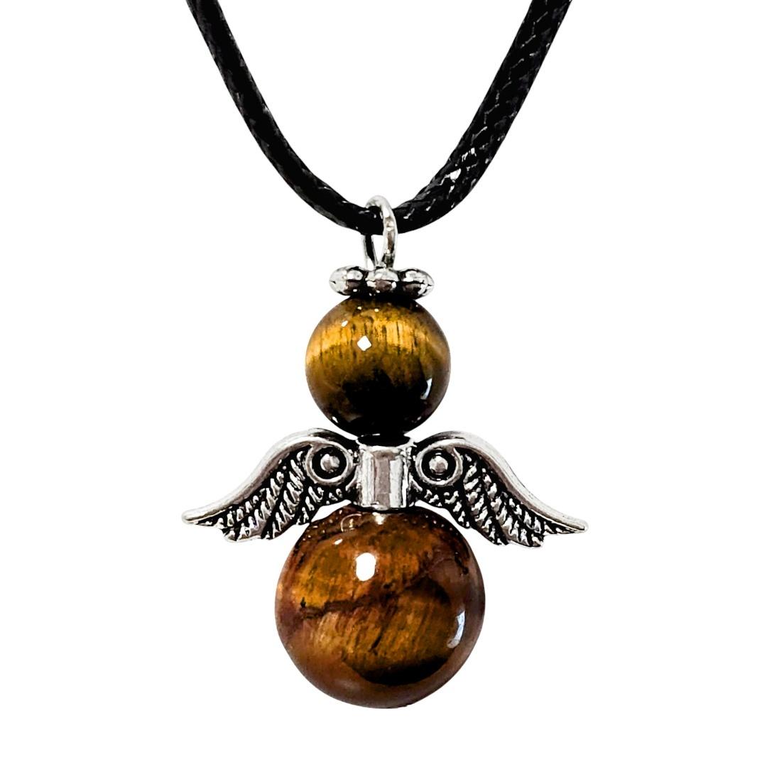 Wisiorek Aniołek z Naturalnych Kamieni na Woskowanym Sznurku - Skrzydła i Aureolka, 21x23 mm.
