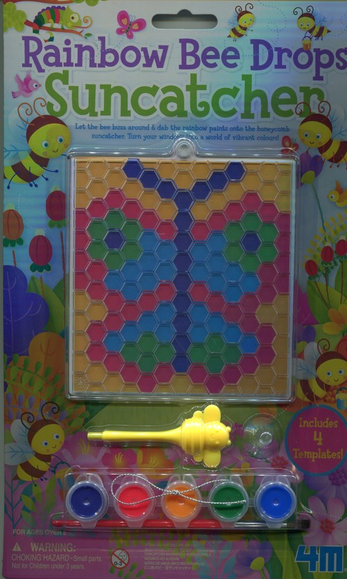 Stwórz przepiękny witraż z motywem pszczoły. Umieść dekorację w okolicach okna i ciesz się pełnymi życia kolorami. Zestaw zawiera: przezroczystą kanwę witraża 5 transparentnych farbek 4 wzory pędzelek przyssawkę aplikator sznurek. Wiek 5+